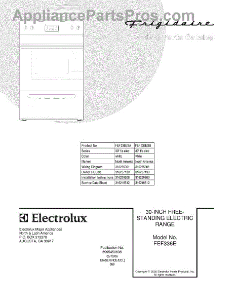 Parts for Frigidaire FEF336ESB: 01 - Cover Parts