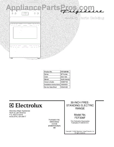 Parts for Frigidaire FEF336FMB: 01 - Cover Parts