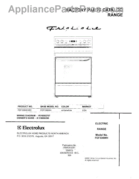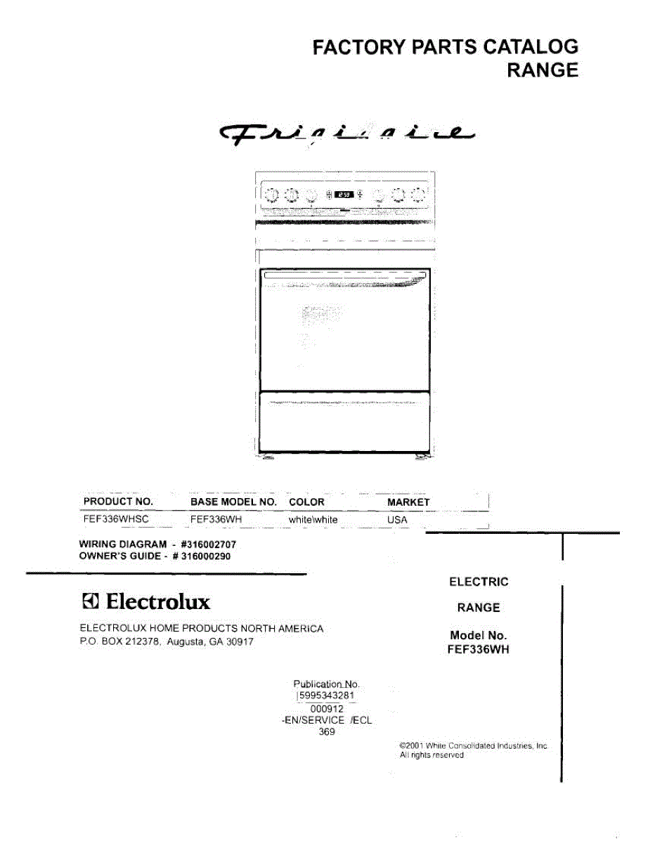 Parts for Frigidaire FEF336WHSC: 01 - Cover Parts