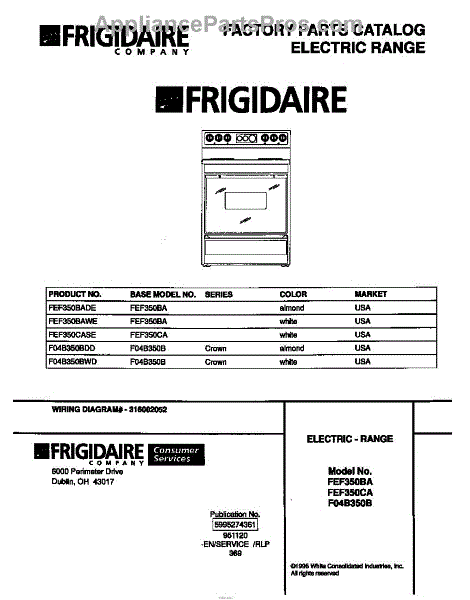 Parts for Frigidaire FEF350BADE: 01 - Cover Parts