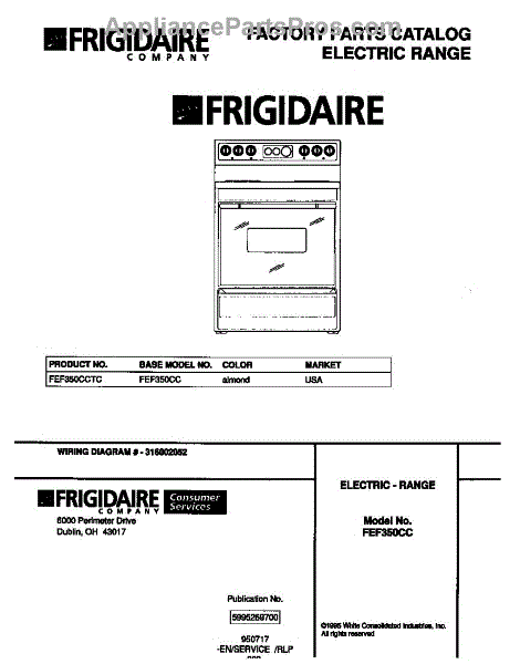 Parts for Frigidaire FEF350CCTC: 01 - Cover Parts