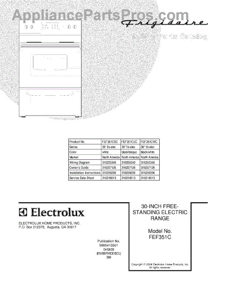 Parts for Frigidaire FEF351CSC: 01 - Cover Parts