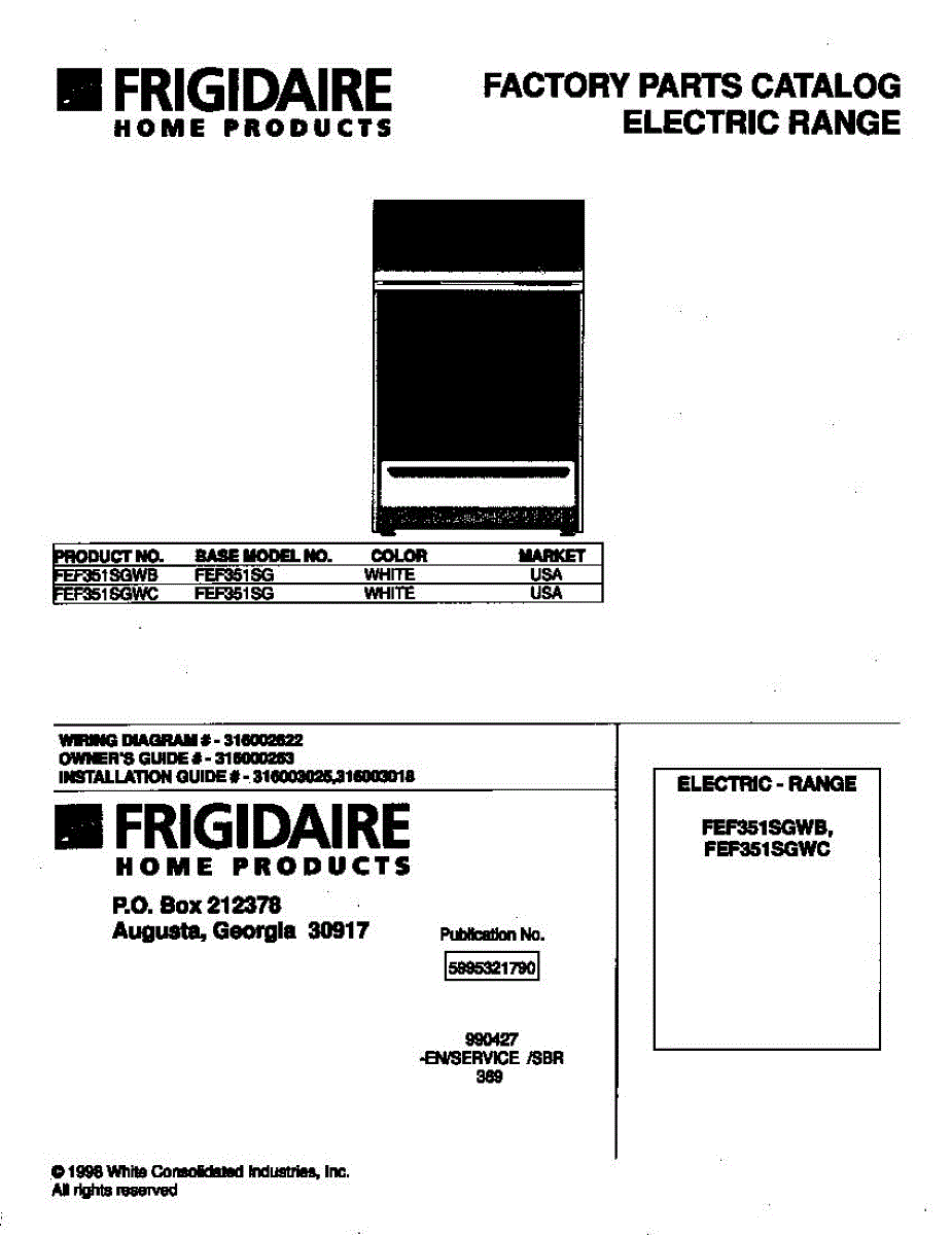 Parts for Frigidaire FEF351SGWB: 01 - Cover Parts