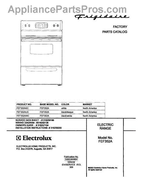 Parts for Frigidaire FEF352ASC: 01 - Cover Parts