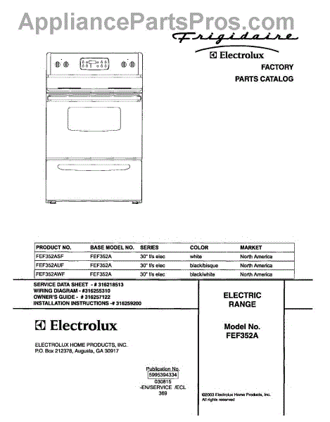 Parts for Frigidaire FEF352AWF: 01 - Cover Parts
