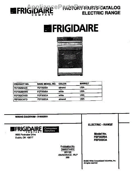 Parts for Frigidaire FEF352BAWE: 01 - Cover Parts