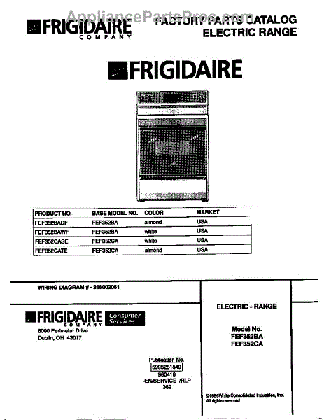 Parts for Frigidaire FEF352CATE: 01 - Cover Parts
