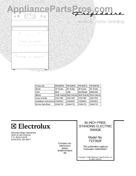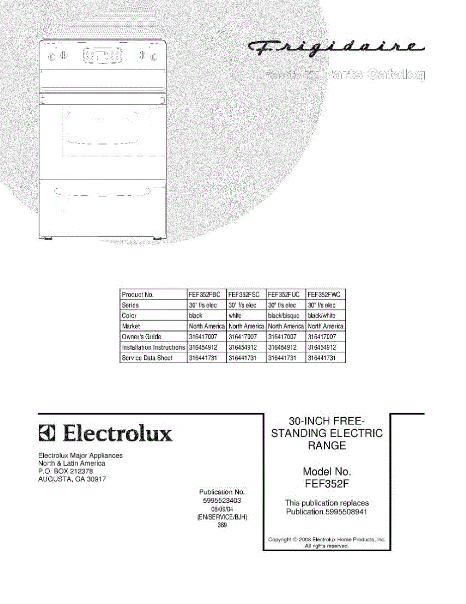 Parts for Frigidaire FEF352FWC: 01 - Cover Parts