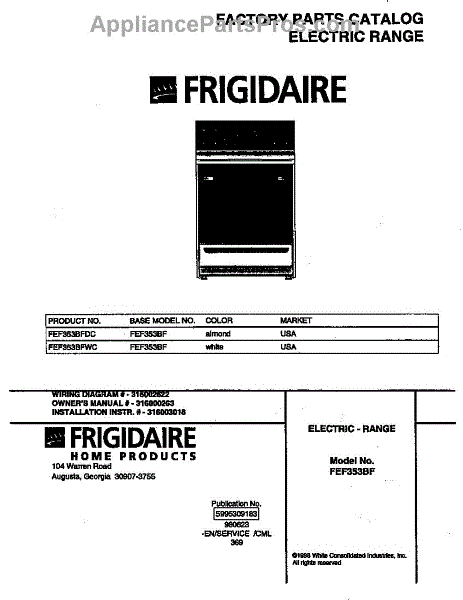 Parts for Frigidaire FEF353BFDC: 01 - Cover Parts