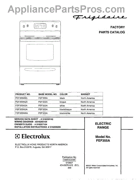 Parts for Frigidaire FEF355AQA: 01 - Cover Parts