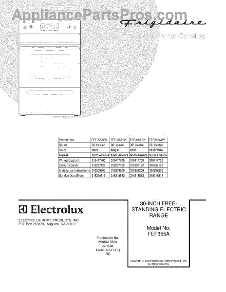 Parts for Frigidaire FEF355AQK: 01 - Cover Parts