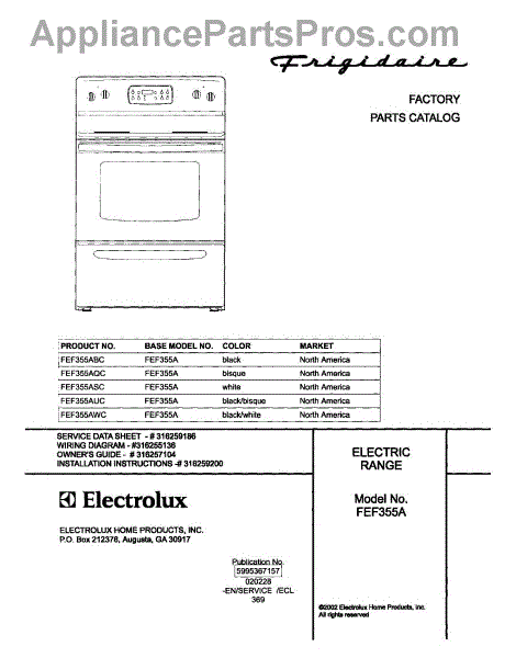 Parts for Frigidaire FEF355AUC: 01 - Cover Parts