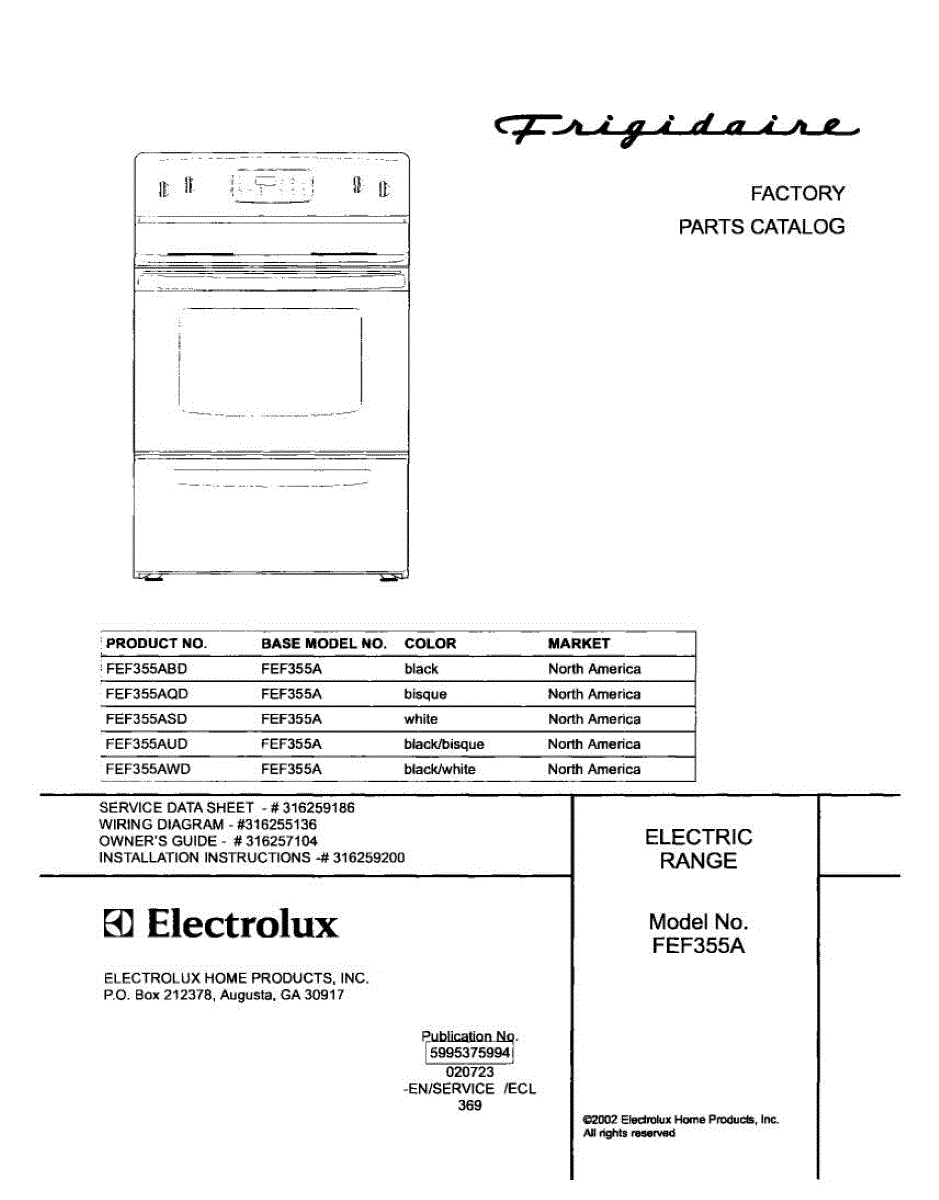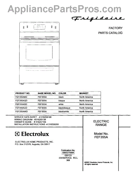 Parts for Frigidaire FEF355AWD: 01 - Cover Parts