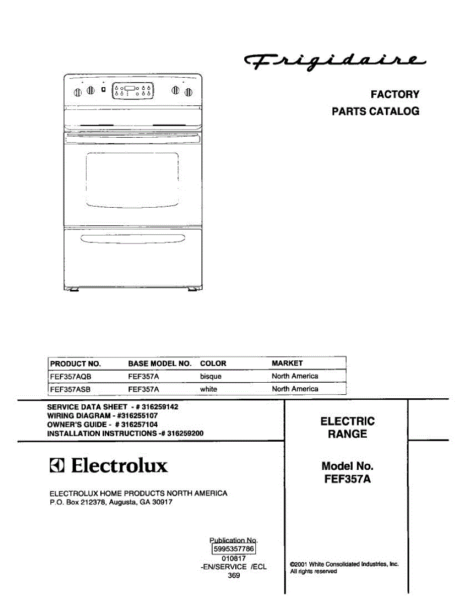 Parts for Frigidaire FEF357AQB: 01 - Cover Parts