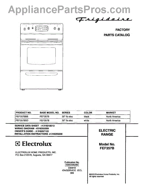 Parts for Frigidaire FEF357BBB: 01 - Cover Parts