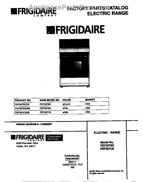 Parts for Frigidaire FEF357BEWB: 01 - Cover Parts