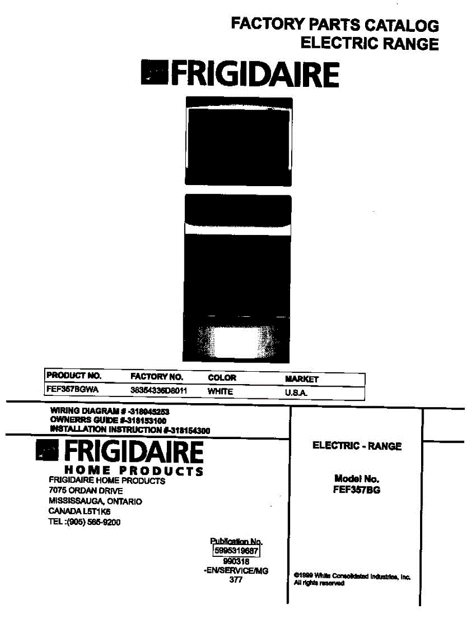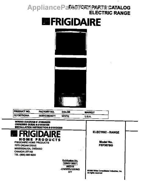 Parts for Frigidaire FEF357BGWA: 01 - Cover Parts