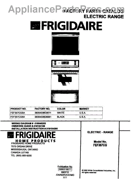 Parts for Frigidaire FEF357CGSA: 01 - Cover Parts