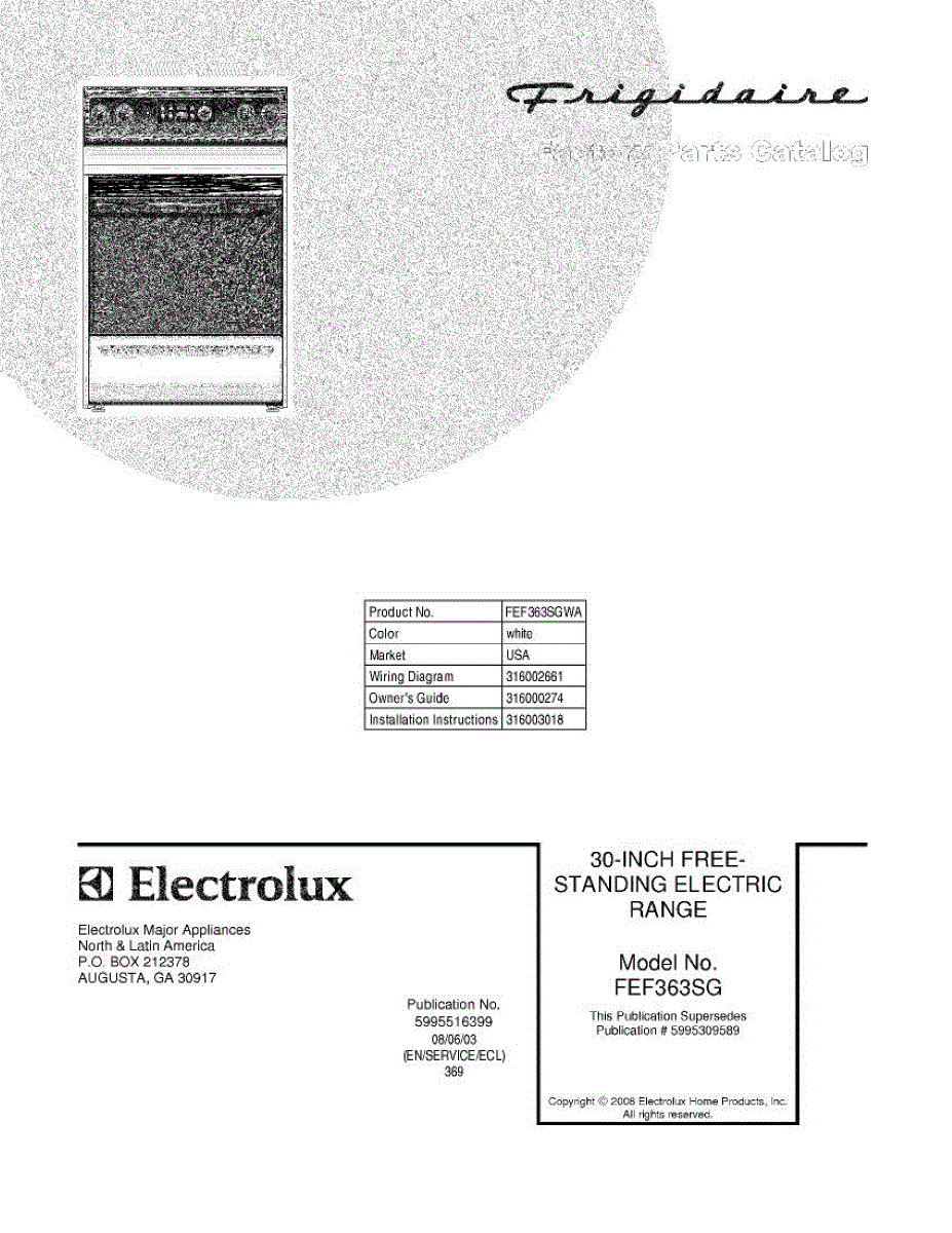 Parts for Frigidaire FEF363SGWA: 01 - Cover Parts