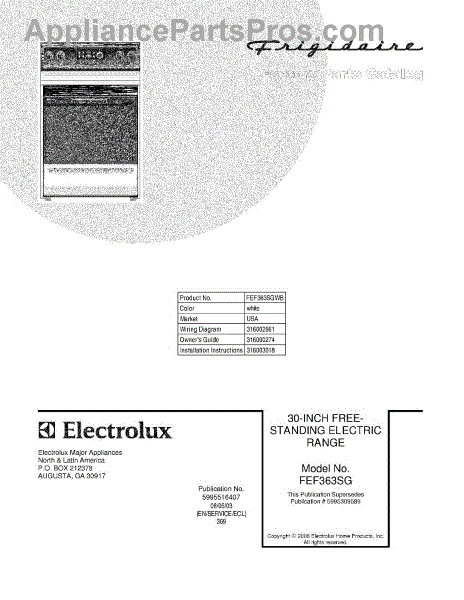 Parts for Frigidaire FEF363SGWB: 01 - Cover Parts