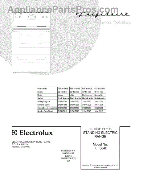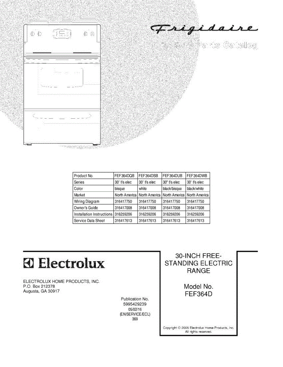 Parts for Frigidaire FEF364DQB: 01 - Cover Parts