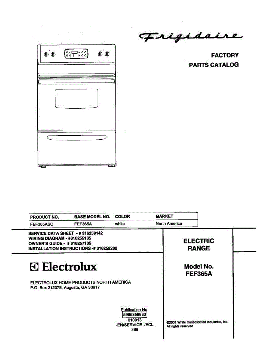 Parts for Frigidaire FEF365ASC: 01 - Cover Parts