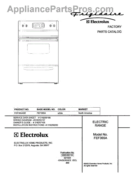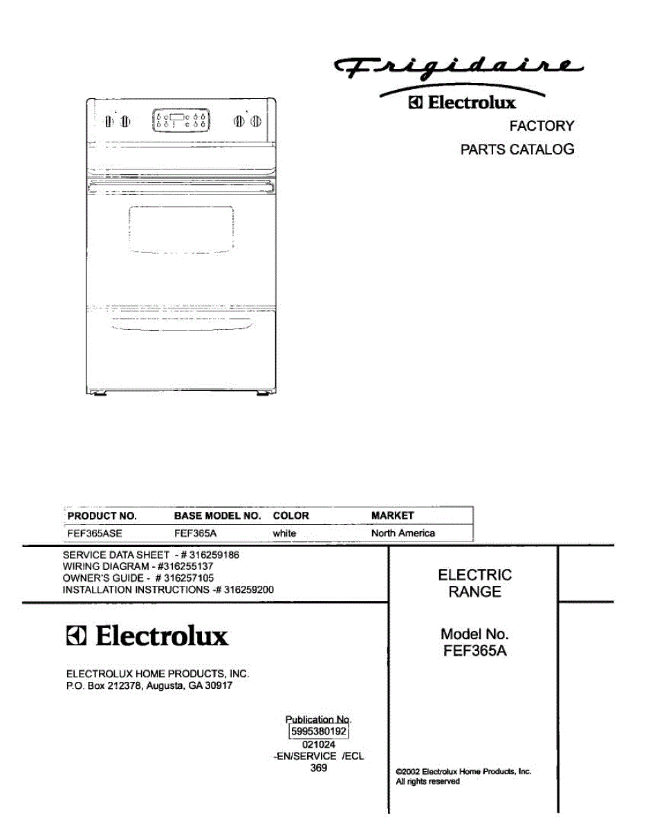 Parts for Frigidaire FEF365ASE: 01 - Cover Parts