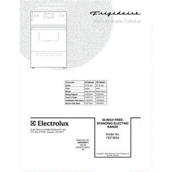 Parts for Frigidaire FEF365ASH: 01 - Cover Parts