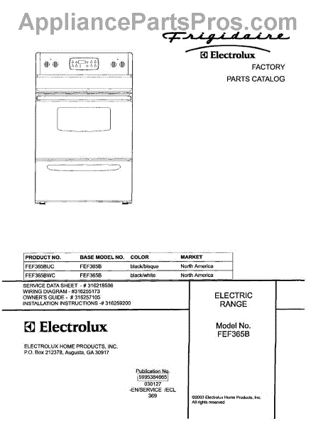 Parts for Frigidaire FEF365BUC: 01 - Cover Parts