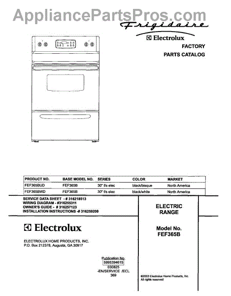Parts for Frigidaire FEF365BUD: 01 - Cover Parts