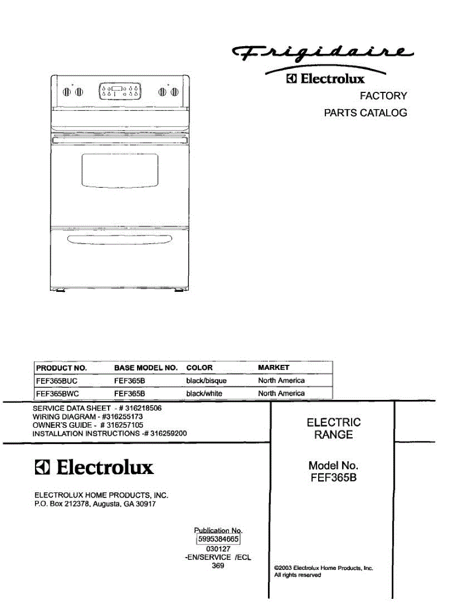 Parts for Frigidaire FEF365BWC: 01 - Cover Parts