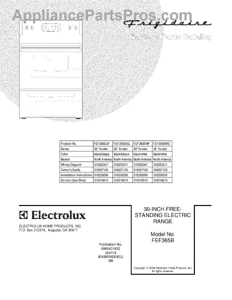 Parts for FEF365BWF