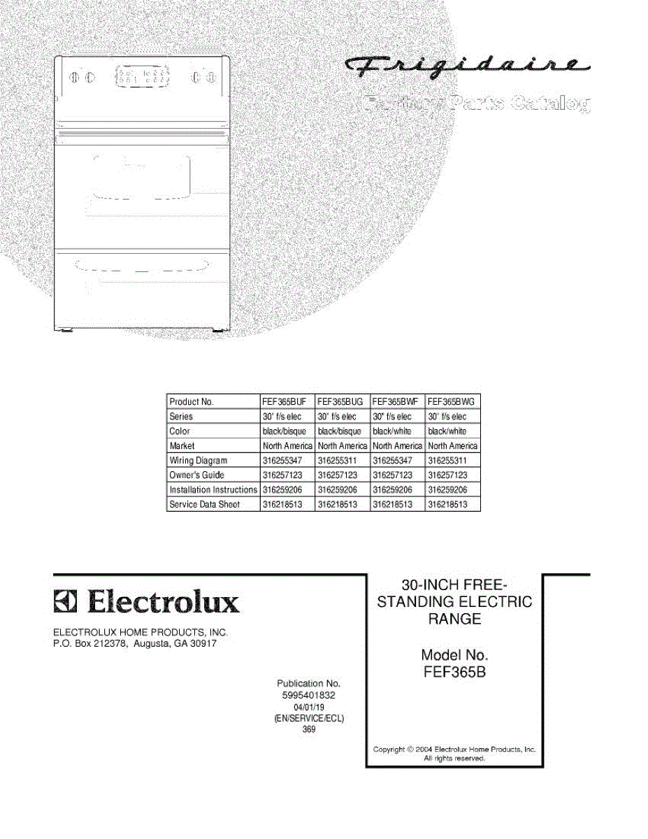 Parts for Frigidaire FEF365BWG: 01 - Cover Parts