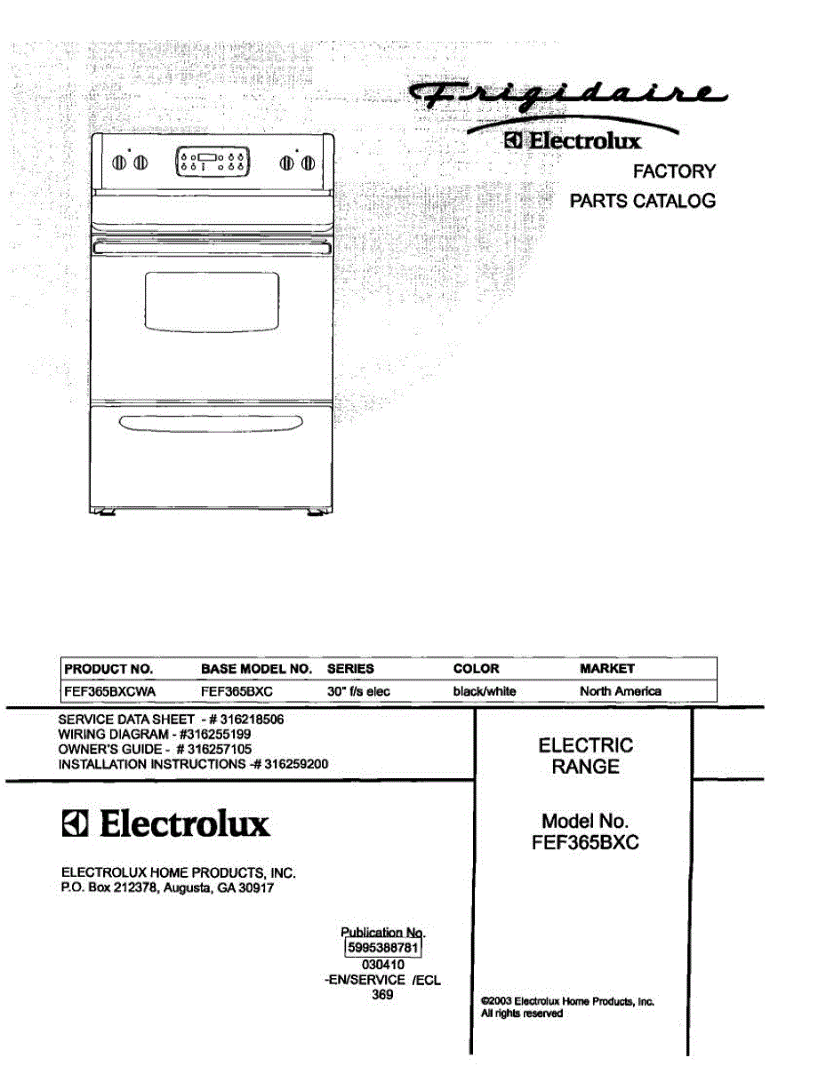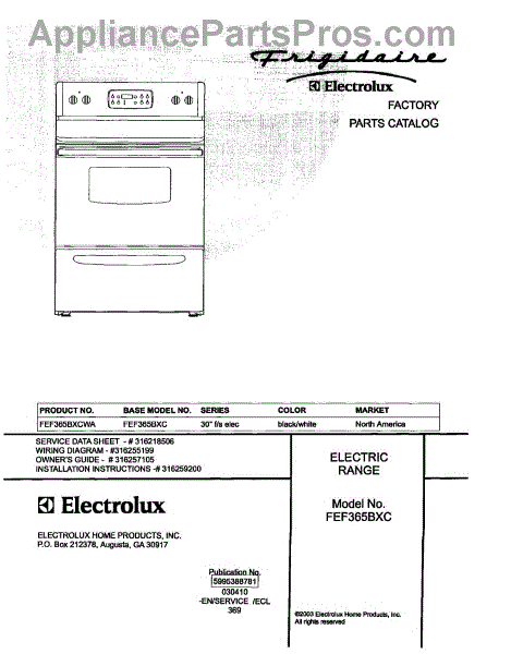 Parts for Frigidaire FEF365BXCWA: 01 - Cover Parts