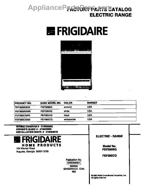Parts for Frigidaire FEF365CGSB: 01 - Cover Parts