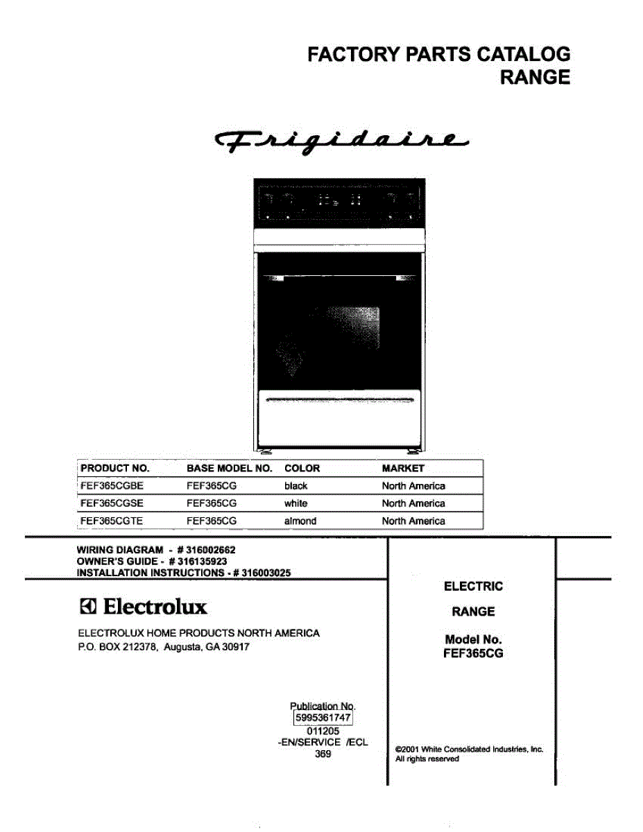 Parts for Frigidaire FEF365CGSE: 01 - Cover Parts