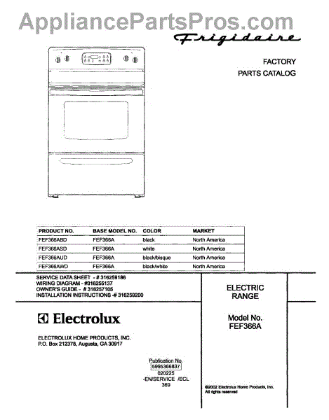 Parts for Frigidaire FEF366ABD: 01 - Cover Parts