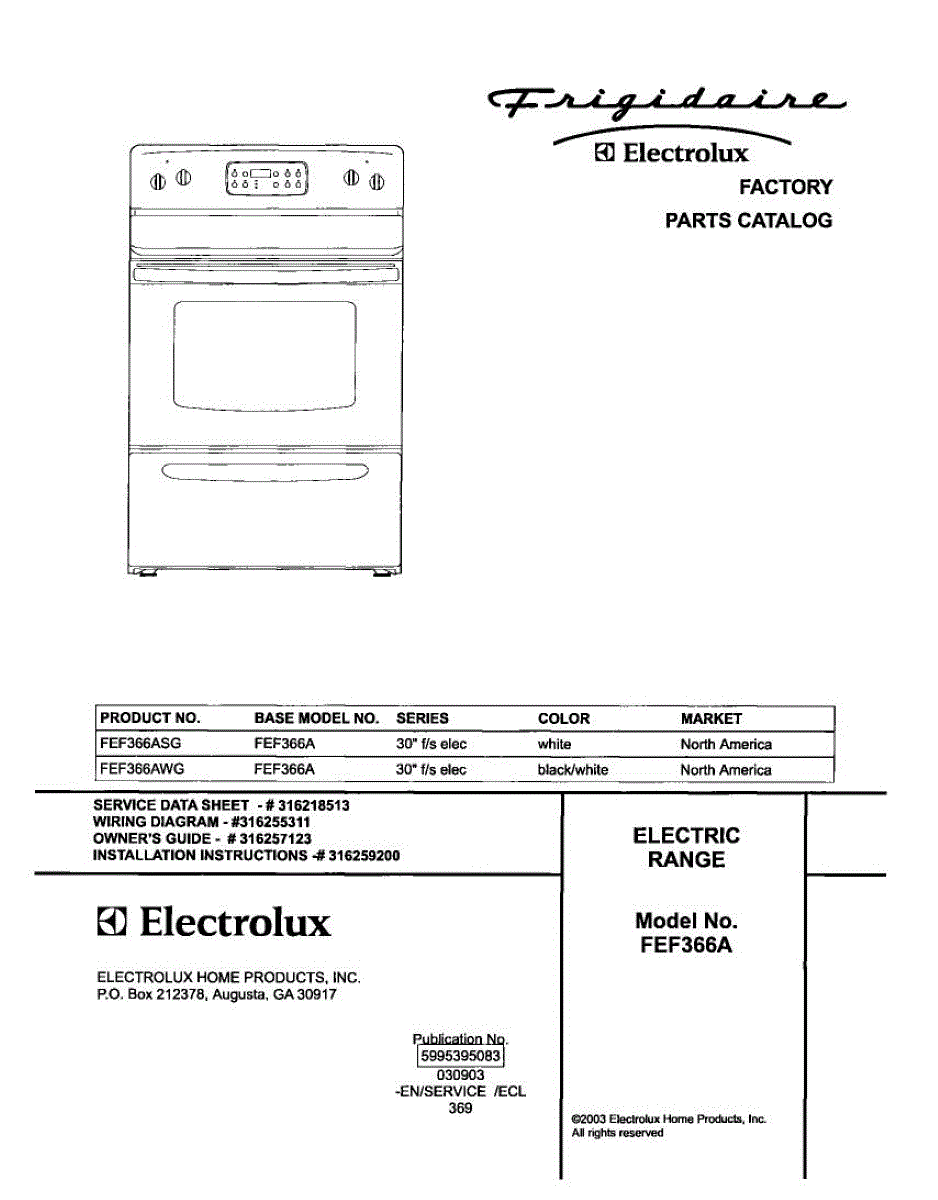 Parts for Frigidaire FEF366ASG: 01 - Cover Parts