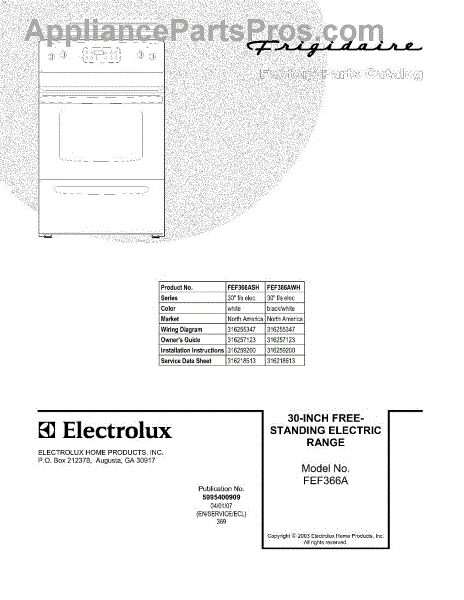 Parts for Frigidaire FEF366ASH: 01 - Cover Parts