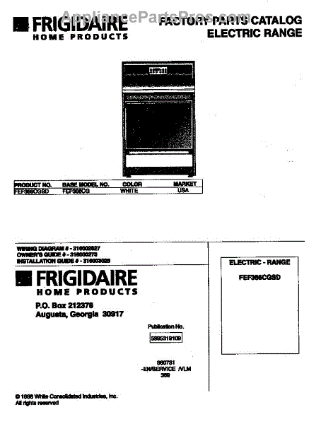 Parts for Frigidaire FEF366CGSD: 01 - Cover Parts