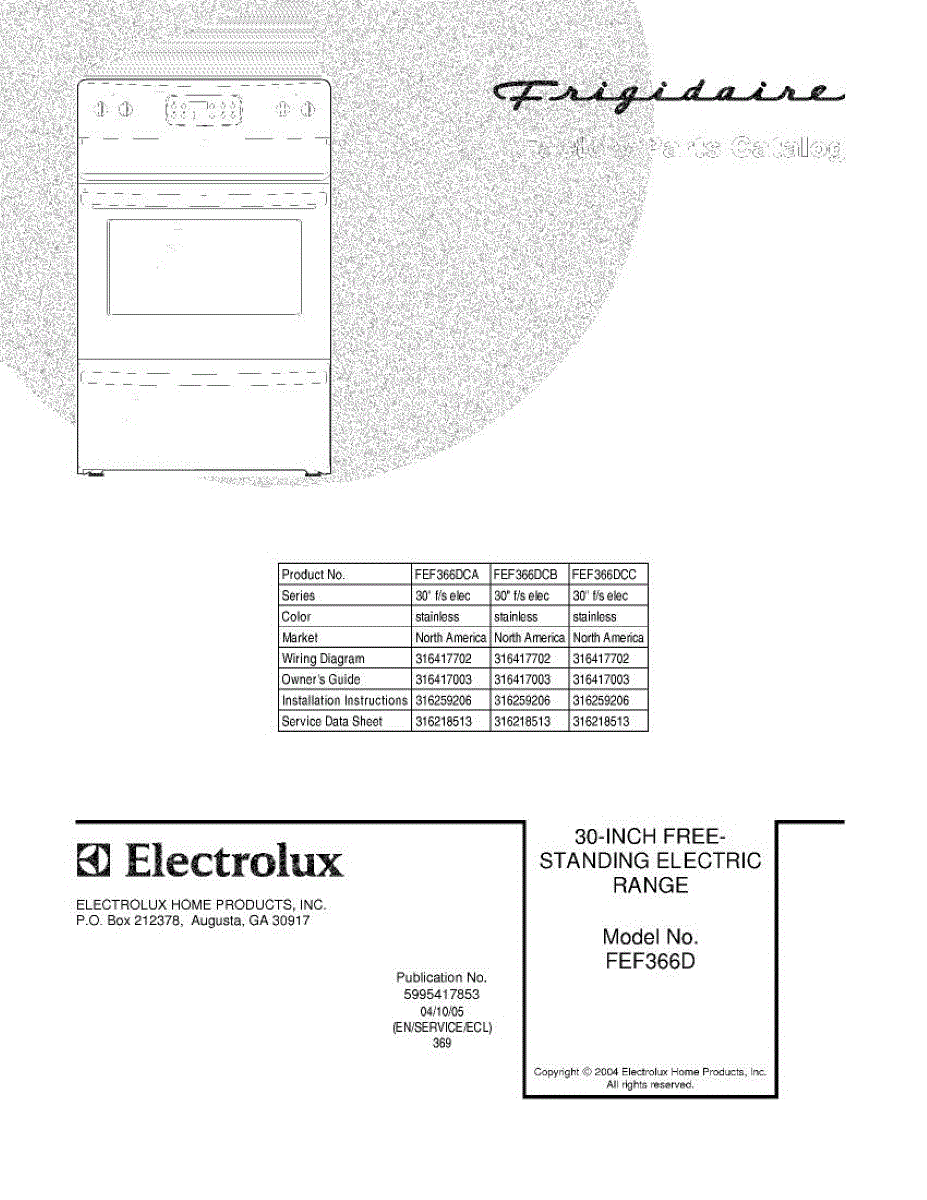 Parts for Frigidaire FEF366DCC: 01 - Cover Parts