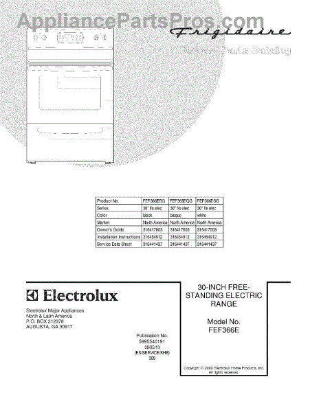 Parts for Frigidaire FEF366ESG: 01 - Cover Parts