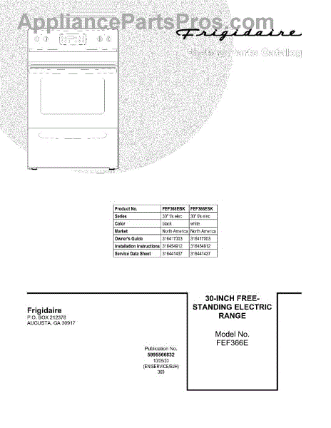 Parts for Frigidaire FEF366ESK: 01 - Cover Parts