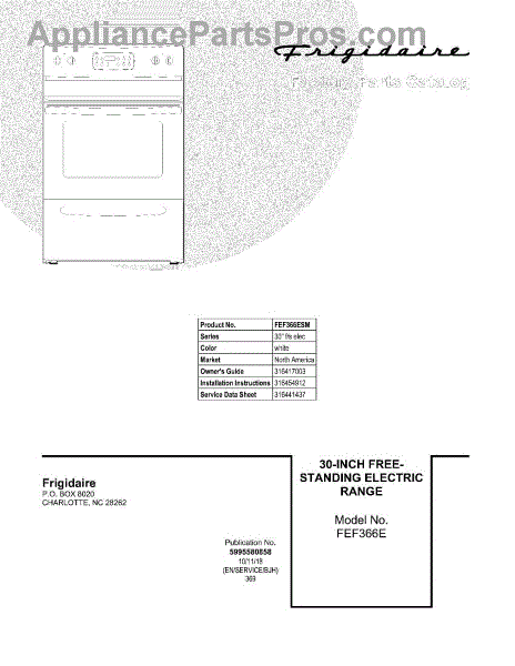Parts for Frigidaire FEF366ESM: 01 - Cover Parts