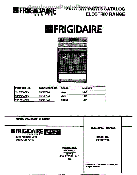 Parts for Frigidaire FEF367CASG: 01 - Cover Parts