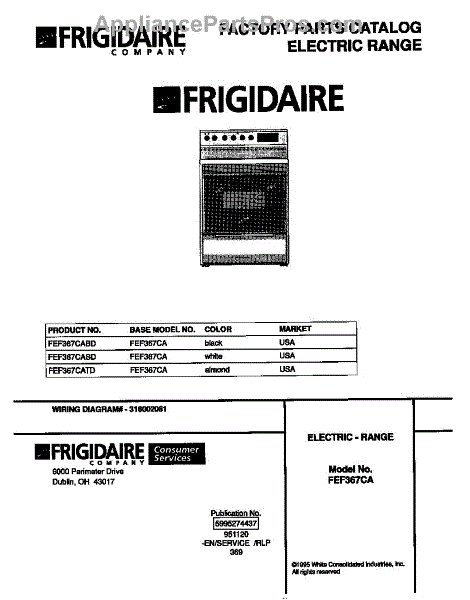 Parts for Frigidaire FEF367CATD: 01 - Cover Parts