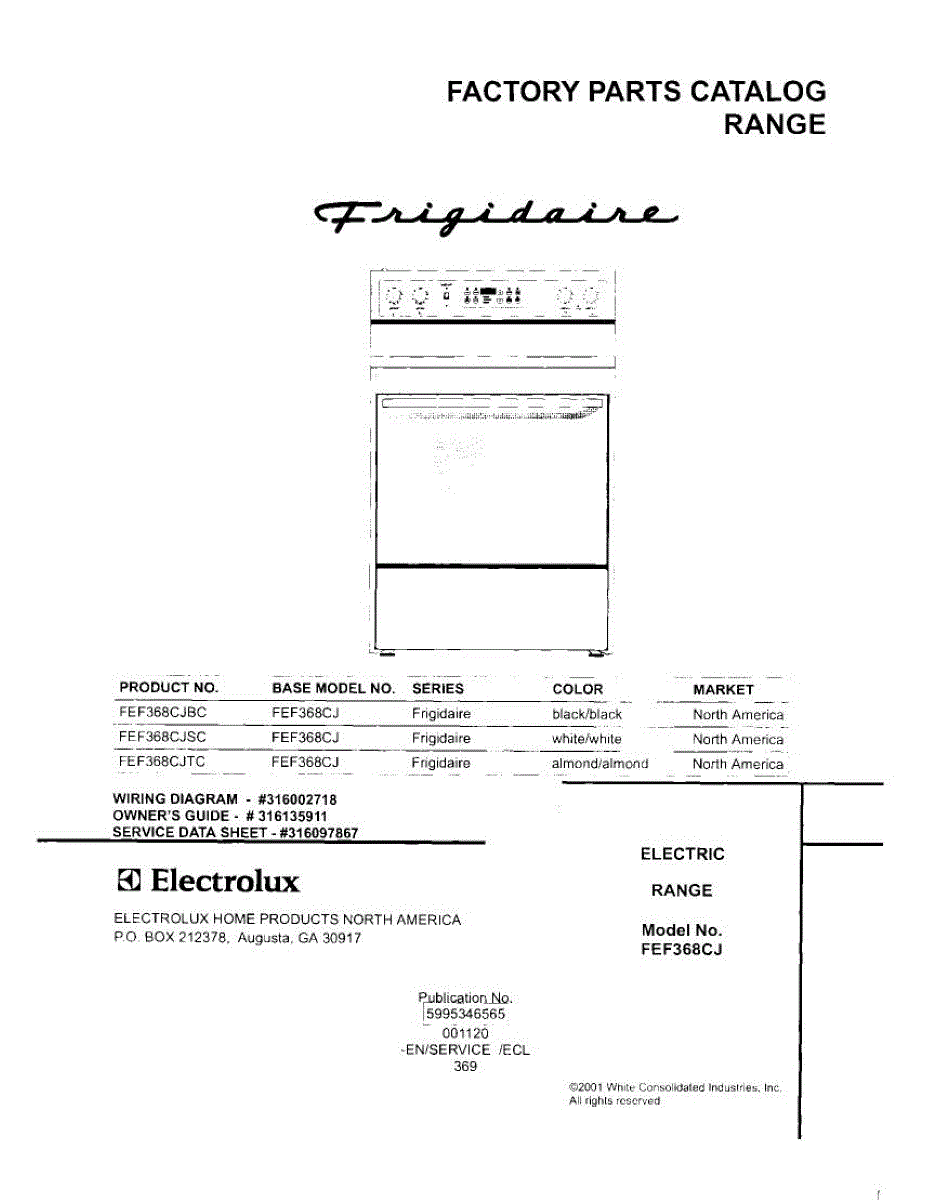 Parts for Frigidaire FEF368CJTC: 01 - Cover Parts