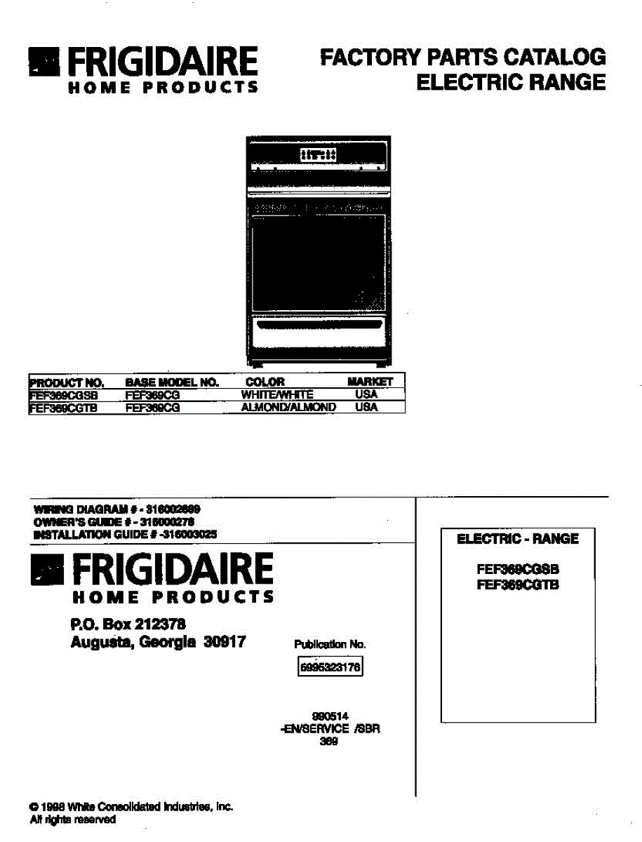 Parts for Frigidaire FEF369CGSB: 01 - Cover Parts