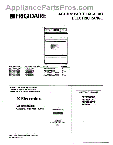 Parts for Frigidaire FEF369CGSC: 01 - Cover Parts