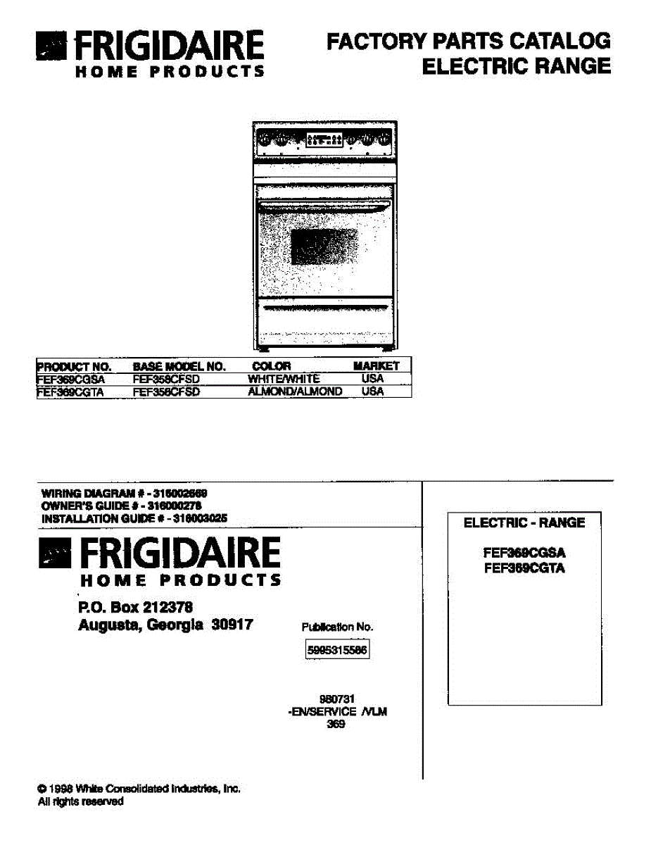 Parts for Frigidaire FEF369CGTA: 01 - Cover Parts